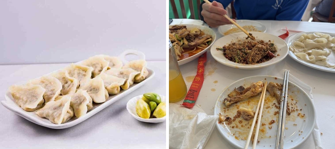 Large portion for 2-3 people, free handmade flat noodles included bone-in chicken, onion, chili, green onion, garlic, wood ear mushroom, and tofu